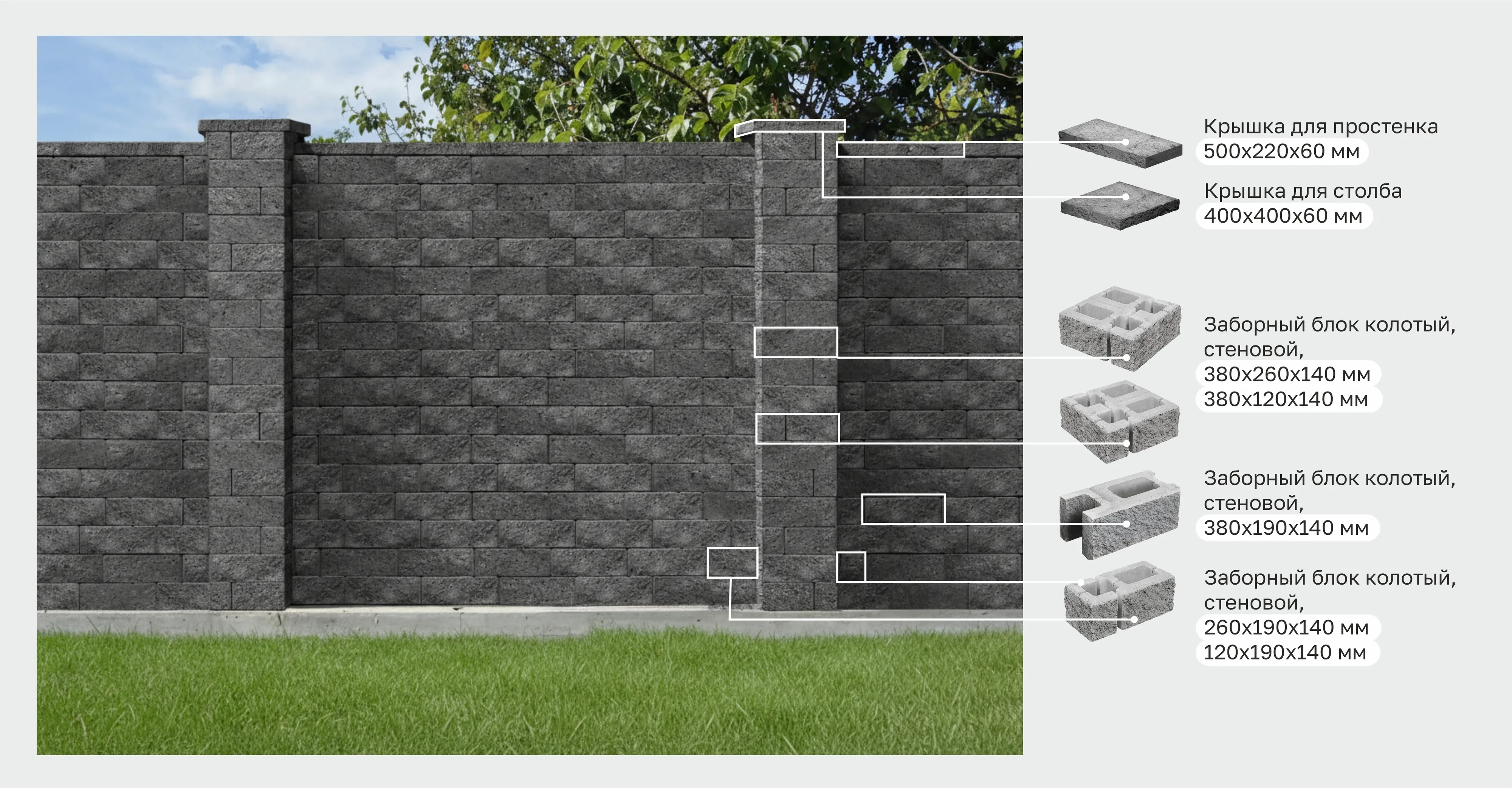 Крышка для заборного блока - специальный защитно-декоративный элемент, который устанавливается на верхнюю часть заборного блока.