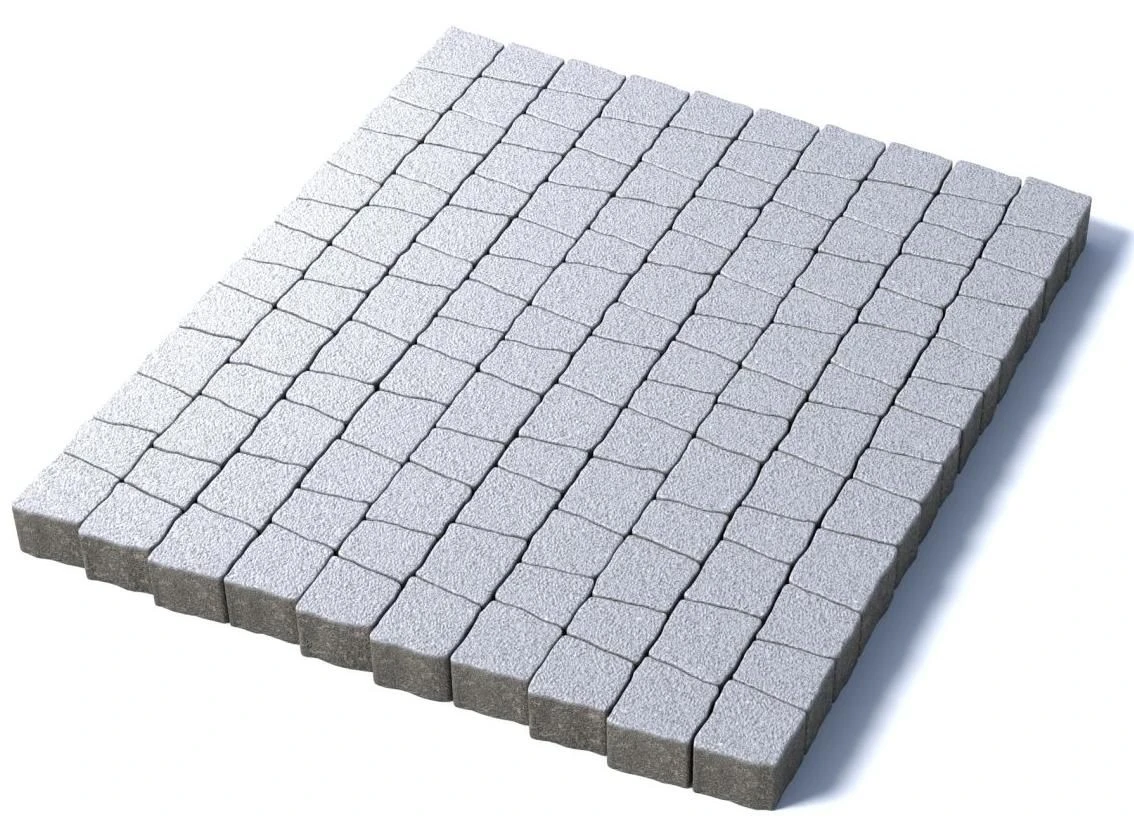 Состоит из 5-и элементов, которые выкладываются в хаотичном порядке рядами. Трапециевидная форма плиты позволяет выполнять как прямую, так и радиусную выкладку. Изготавливается по уникальной технологии методом полусухого вибропрессования из бетона. Брусчатка Абрис изготовлена с добавлением натуральной мраморной крошки белого цвета, отличается высокими физико-механическими свойствами.