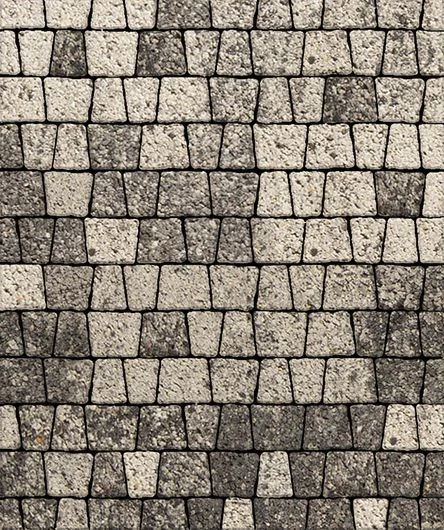 Фигурные элементы мощения Абрис имеют оригинальную трапециевидную форму, волнистый край и представлены в комплекте из пяти камней различной величины. Брусчатка выполнена в теплых тонах — белого и черного цвета с оригинальной гладкой фактурой. Изготавливается по уникальной технологии окрашивания методом полусухого вибропрессования из бетона. Предназначена для мощения садовых дорожек, пешеходных зон, тротуаров.