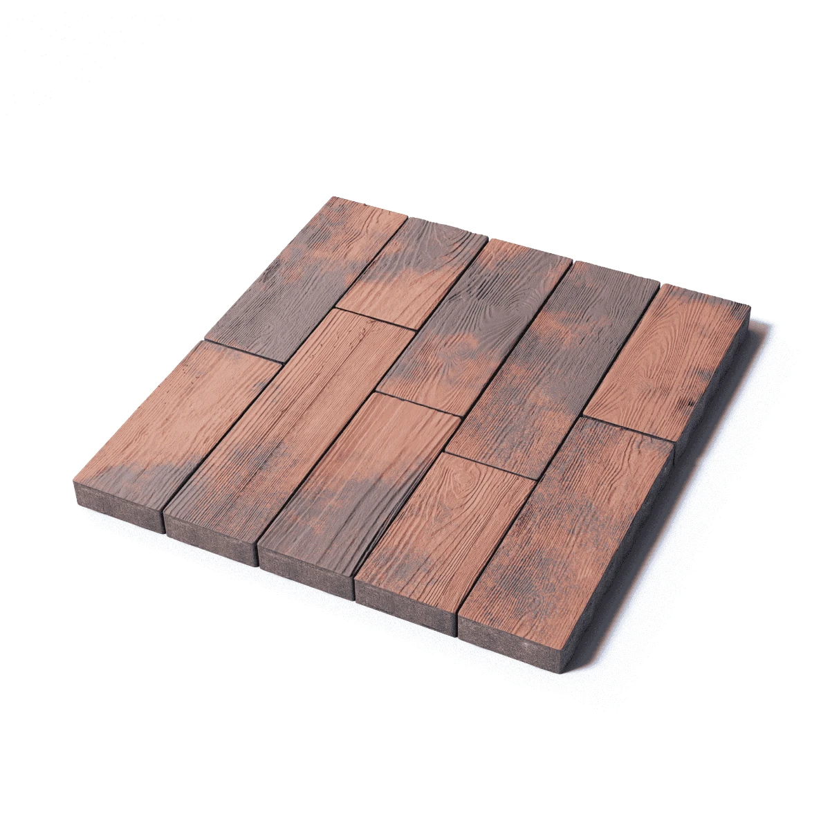 Изготавливается по уникальной технологии методом полусухого вибропрессования из бетона. Поверхность медно-коричневого цвета выполнена с оригинальной фактурой дерева. Идеальна для оформления террас, патио.