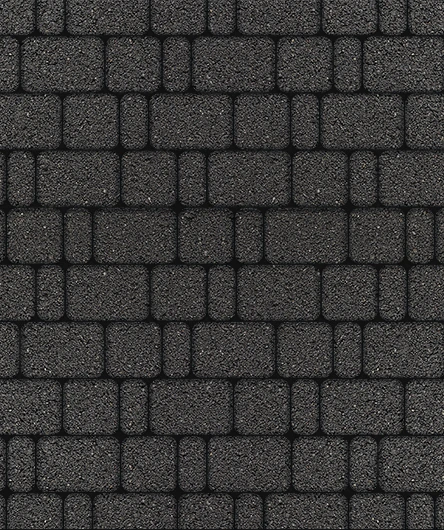 Состоит из 3-х элементов, которые выкладываются в хаотичном порядке рядами. Имеет закругленные углы. Изготавливается по уникальной технологии методом полусухого вибропрессования из бетона. Поверхность выполнена с оригинальной зернистой фактурой черного цвета. Натуральная гранитная крошка в лицевом слое изделий наделяет плитку приятной шероховатостью, а также устойчивостью к скольжению. Брусчатка Классико отличается высокой износостойкостью и практичностью в эксплуатации.