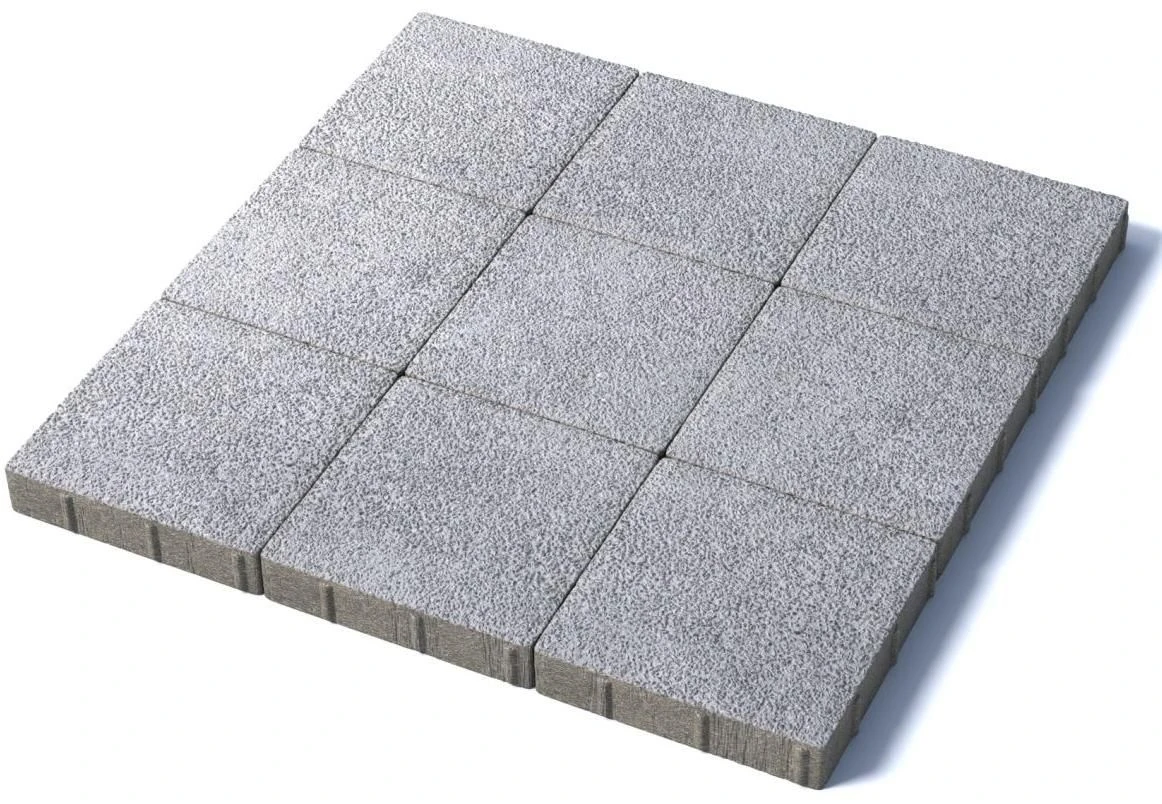 Изготавливается по уникальной технологии методом полусухого вибропрессования из бетона. Поверхность выполнена с оригинальной зернистой фактурой белого цвета. Натуральная Гранитная крошка в лицевом слое изделий наделяет плитку приятной шероховатостью, а также устойчивостью к скольжению. Брусчатка Квадрат 300х300 отличается высокой износостойкостью и практичностью в эксплуатации.