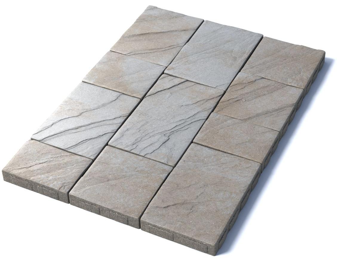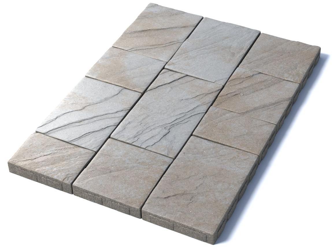 Состоит из 6-и элементов, которые выкладываются в хаотичном порядке рядами. Изготавливается по уникальной технологии методом полусухого вибропрессования из бетона. Брусчатка Литос имеет глубокий рельефный узор на поверхности, имитирующий природную фактуру камня бело-песчанного цвета.