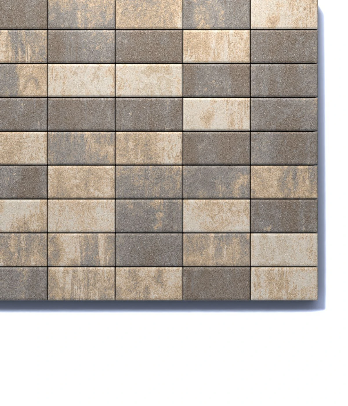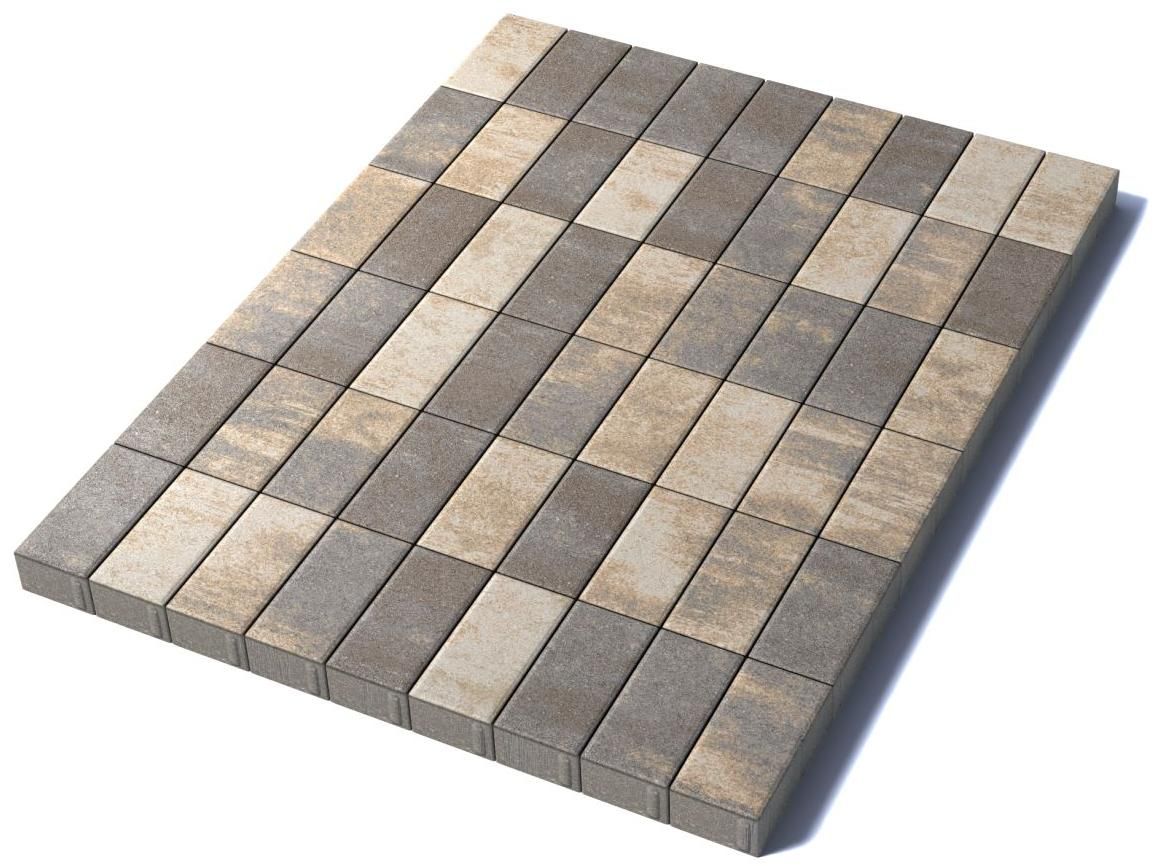 Изготавливается по уникальной технологии методом полусухого вибропрессования из бетона. Поверхность бело-бежево-темно-коричневого цвета. Брусчатка Прямоугольник 100х200 отличается высокой износостойкостью и практичностью в эксплуатации.