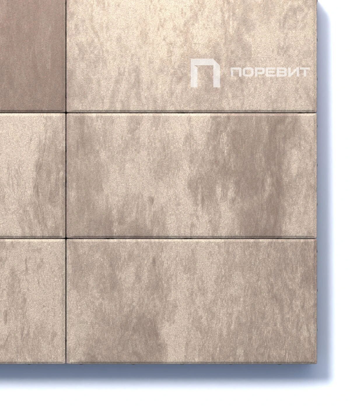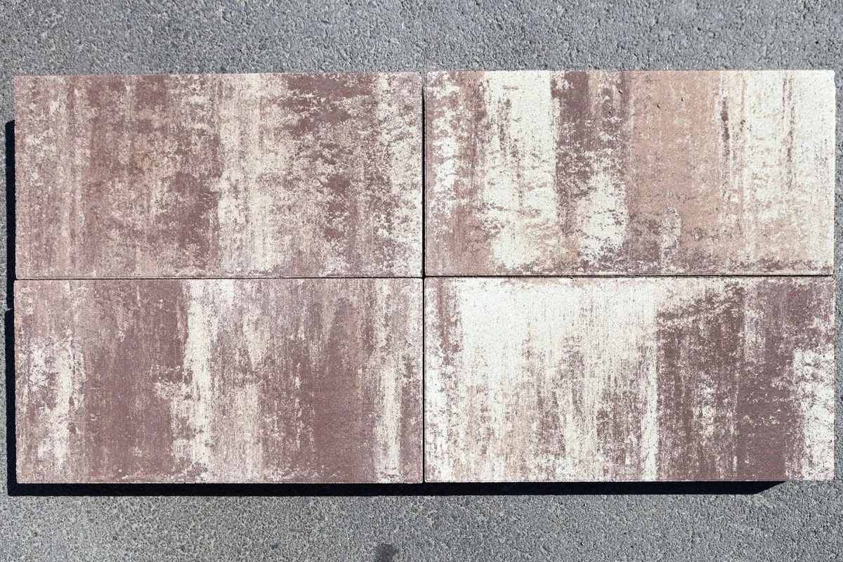 Поверхность бело-бежево-коричневого цвета. Для прокраса плиты в нескольких цветах применяется технология введения пигмента в бетон Colormix. Два или три пигмента, нанесённые хаотично, образуют неповторимый рисунок на поверхности изделия. Чтобы избежать цветовых пятен или разрывов рекомендуется выполнять укладку плиты с соблюдением правила пяти или трех поддонов.