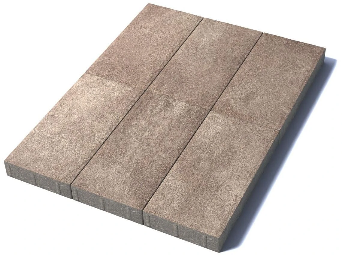 Изготавливается по уникальной технологии методом полусухого вибропрессования из бетона. Брусчатка Прямоугольник 600х300 отличается высокой износостойкостью и практичностью в эксплуатации. Поверхность выполнена с оригинальной зернистой фактурой бело-бежево-коричневого цвета. Натуральная Гранитная крошка в лицевом слое изделий наделяет плитку приятной шероховатостью, а также устойчивостью к скольжению. Для прокраса плиты в нескольких цветах применяется технология введения пигмента в бетон Colormix. Два или три пигмента, нанесённые хаотично, образуют неповторимый рисунок на поверхности изделия. Чтобы избежать цветовых пятен или разрывов рекомендуется выполнять укладку плиты с соблюдением правила пяти или трех поддонов.