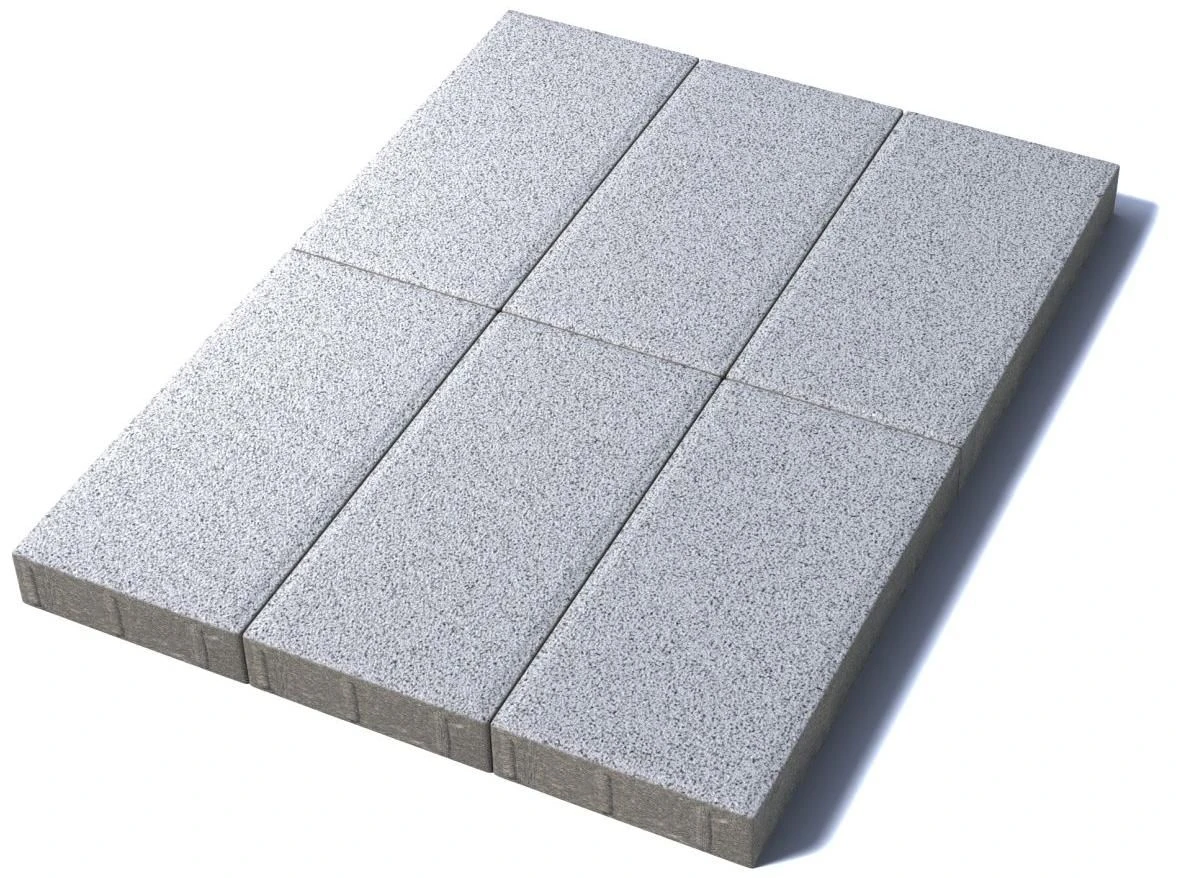 Изготавливается по уникальной технологии методом полусухого вибропрессования из бетона. Брусчатка Прямоугольник 600х300 изготовлена с добавлением натуральной мраморной крошки бело-черного цвета, отличается высокими физико-механическими свойствами.