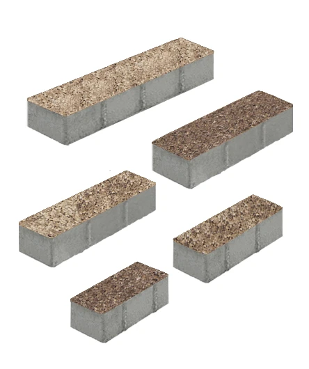 Состоит из 5-и элементов, которые выкладываются в хаотичном порядке рядами. Изготавливается по уникальной технологии методом полусухого вибропрессования из бетона. Поверхность выполнена с оригинальной зернистой фактурой бело-бежево-коричневого цвета. Натуральная гранитная крошка в лицевом слое изделий наделяет плитку приятной шероховатостью, а также устойчивостью к скольжению.