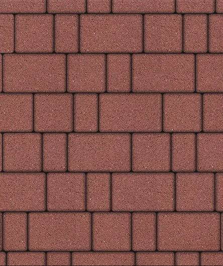 Состоит из 3-х элементов, которые выкладываются в хаотичном порядке рядами. Изготавливается по уникальной технологии методом полусухого вибропрессования из бетона. Поверхность красного цвета.