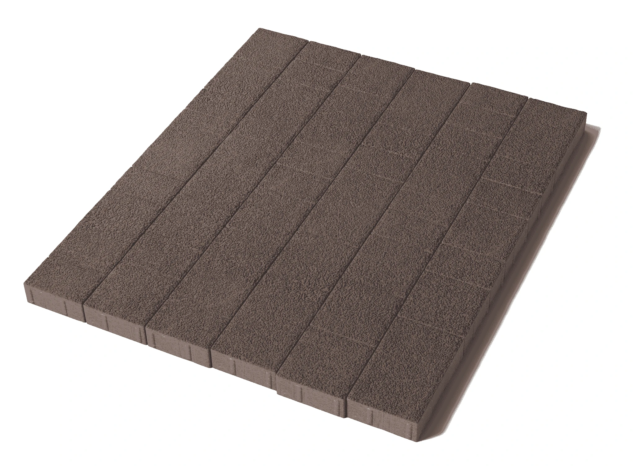 Состоит из 3-х элементов, которые выкладываются в хаотичном порядке рядами. Изготавливается по уникальной технологии методом полусухого вибропрессования из бетона. Поверхность выполнена с оригинальной зернистой фактурой коричневого цвета. Натуральная гранитная крошка в лицевом слое изделий наделяет плитку приятной шероховатостью, а также устойчивостью к скольжению. Брусчатка Старый город отличается высокой износостойкостью и практичностью в эксплуатации.