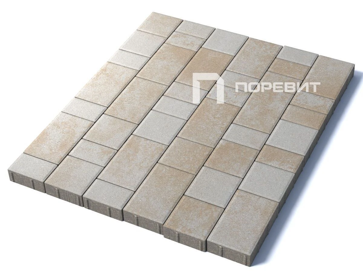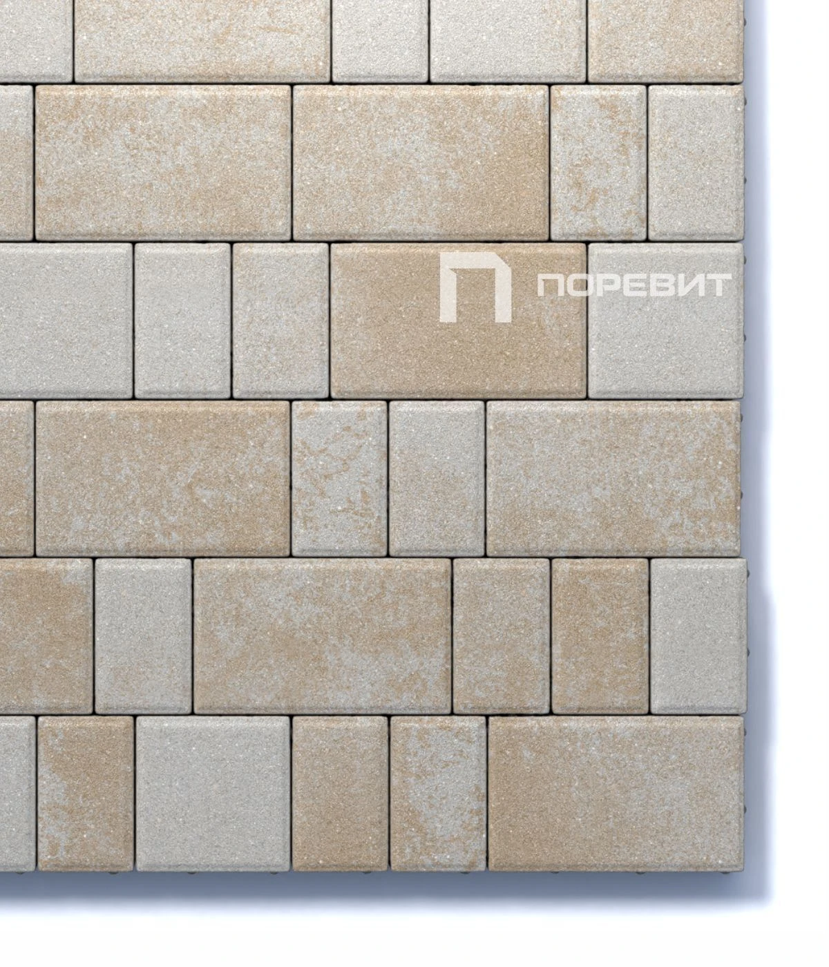 Состоит из 3-х элементов, которые выкладываются в хаотичном порядке рядами. Изготавливается по уникальной технологии методом полусухого вибропрессования из бетона. Поверхность бело-песчанного цвета. Брусчатка Старый город отличается высокой износостойкостью и практичностью в эксплуатации.