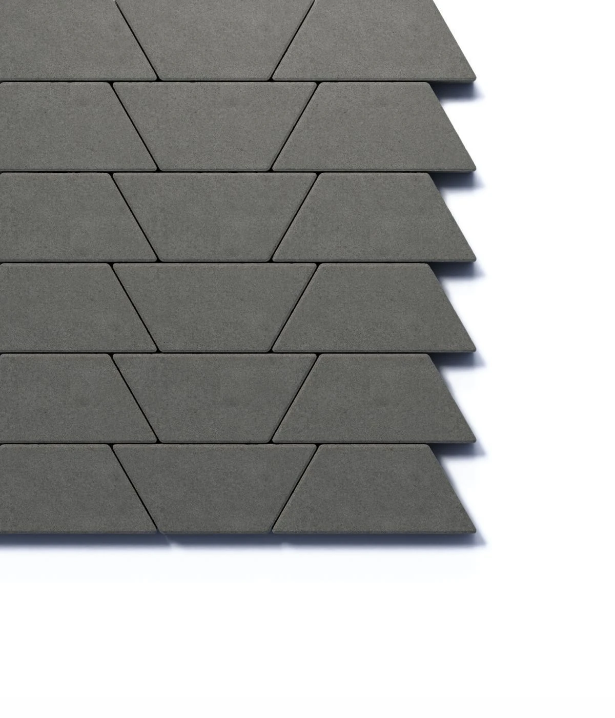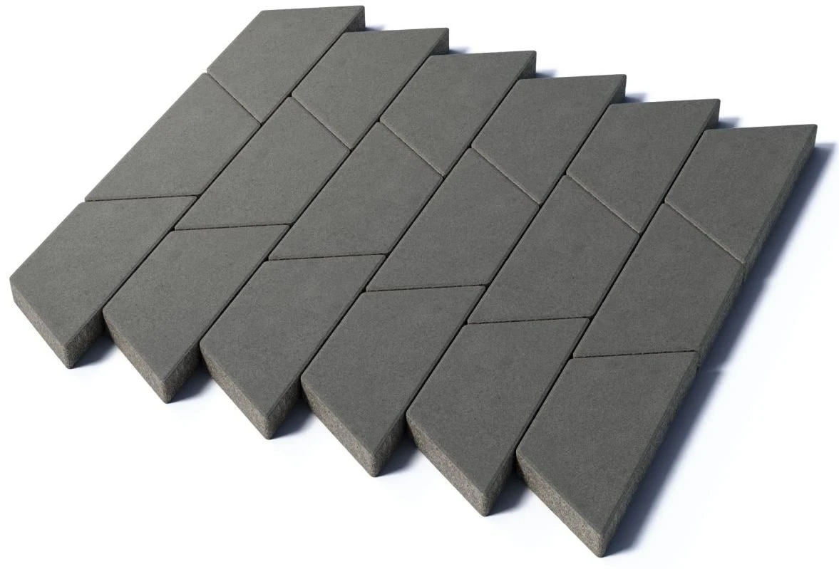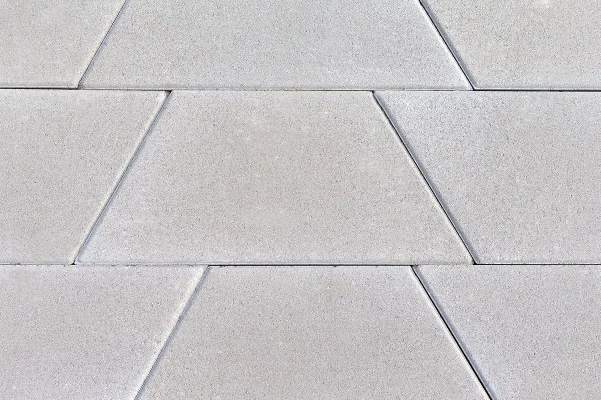 Тротуарная плитка Трапеция 1.Т.8, цвет — серый. Изготавливается по уникальной технологии методом полусухого вибропрессования из бетона. Поверхность серого цвета.