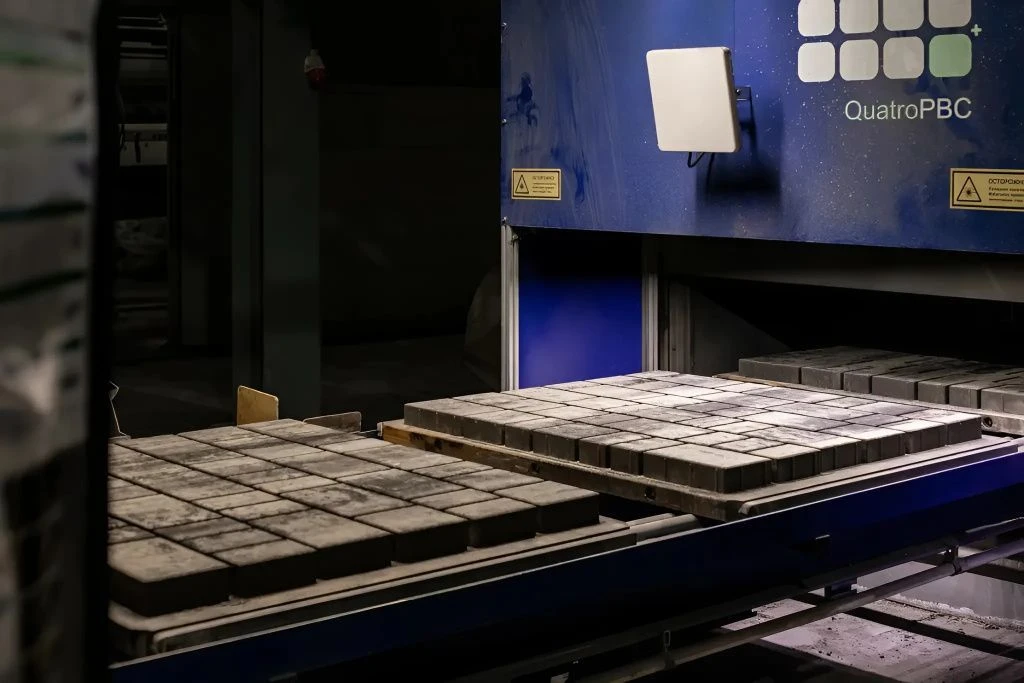 Завод имеет собственные формы для производства плиты, которые постоянно обновляются. Уникальная система искусственного интеллекта QuatroPBC позволяет отслеживать точность размеров плиты и качество верхнего слоя. Это помогает производить продукцию только высокого качества.