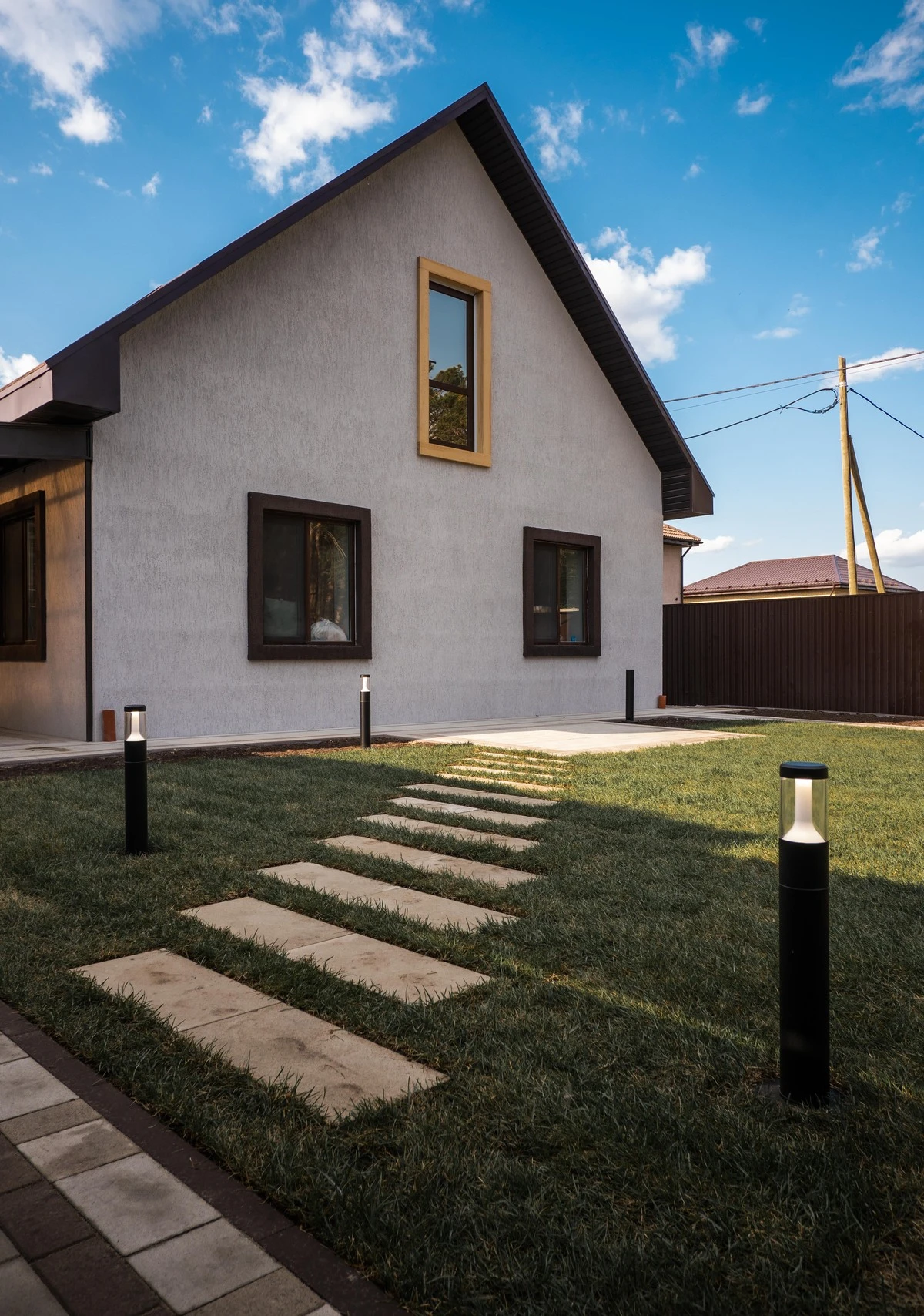 Освещение добавляет дорожке не только функциональность, но и красоту. Это необязательный элемент декора, однако с настроенным освещением снижается риск получить травму в темноте, когда люди подворачивают ноги из-за того, что нога ступает в пространство между плитками.