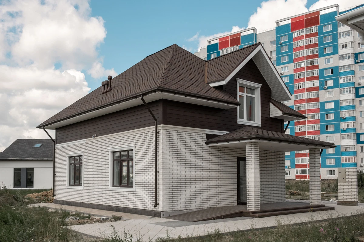 Пешеходные дорожки и отмостка выполнена тротуарной плиткой с применением бордюров.
