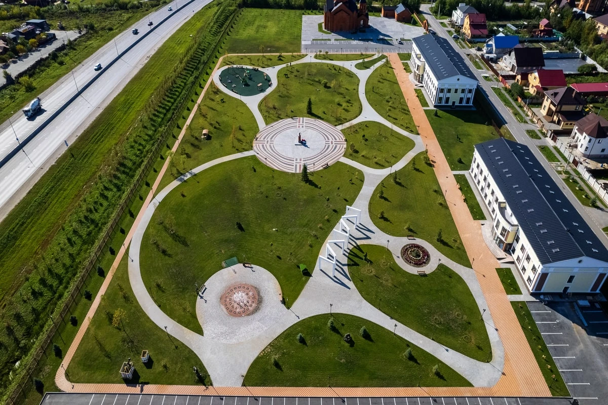 Плиткой белого, черного и красного цвета выложена центральная часть парка в виде орнамента.