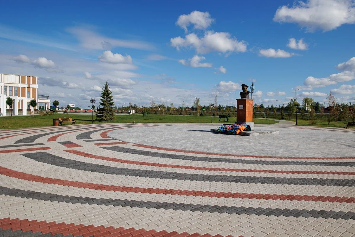 Зона фонтана и территория, где расположен памятник Маршалу И.Х. Баграмяну оформлены плиткой Старый город и прямоугольник 100 на 200 в цвете Антрацит.