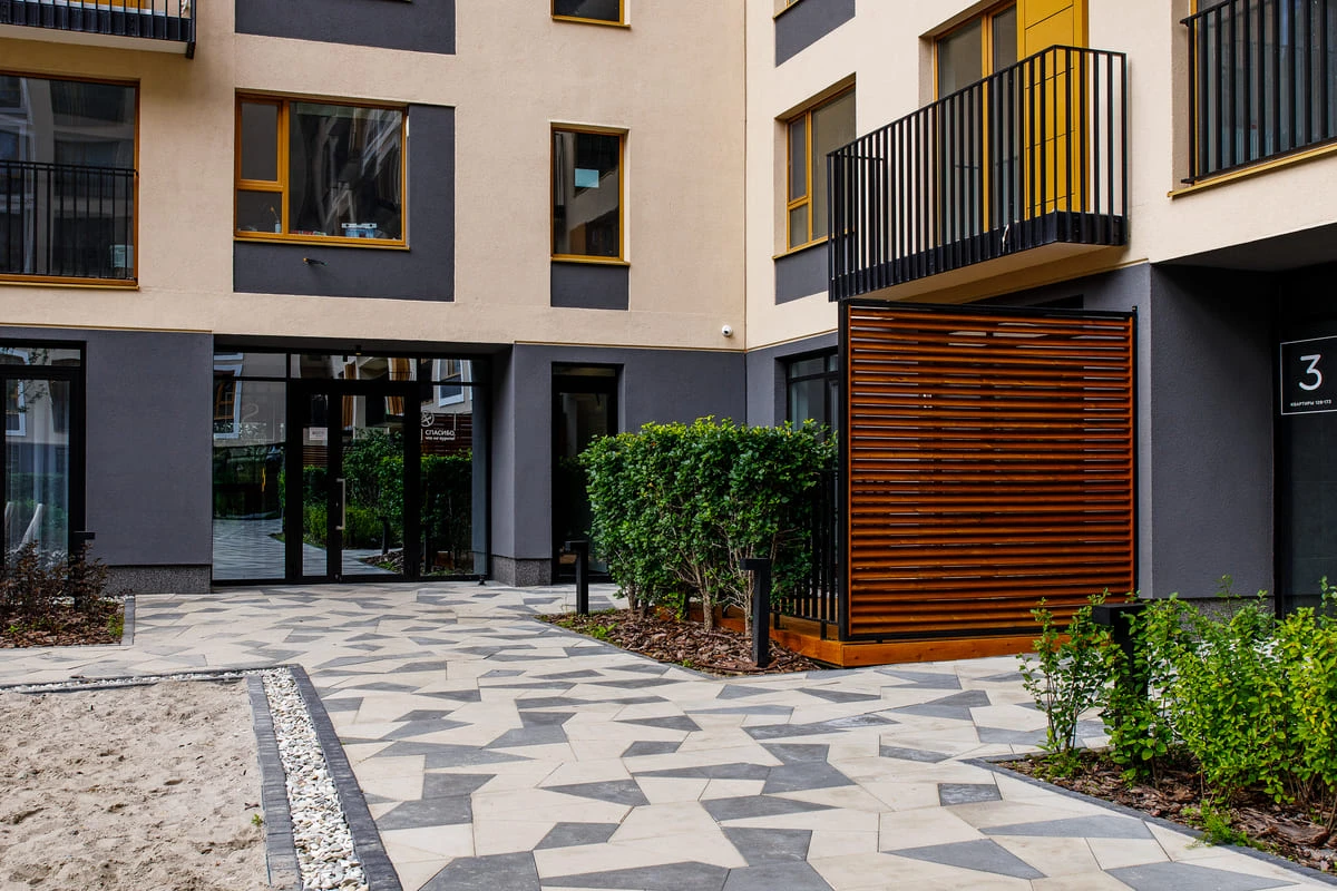 • Ландшафтный дизайн в Тюмени с плиткой Ригель, Трио, 300х900 мм