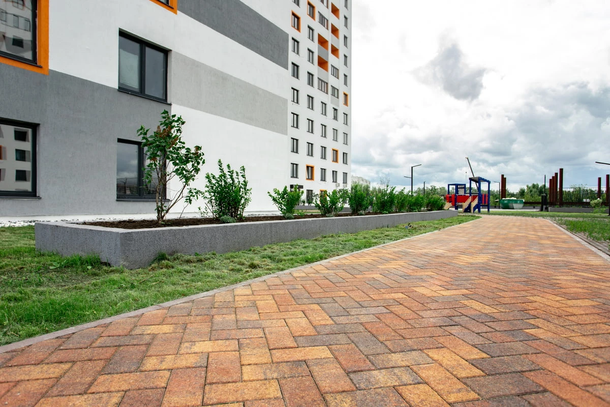 • Бордюр-поребрик и газонная решетка, цвет коричневый