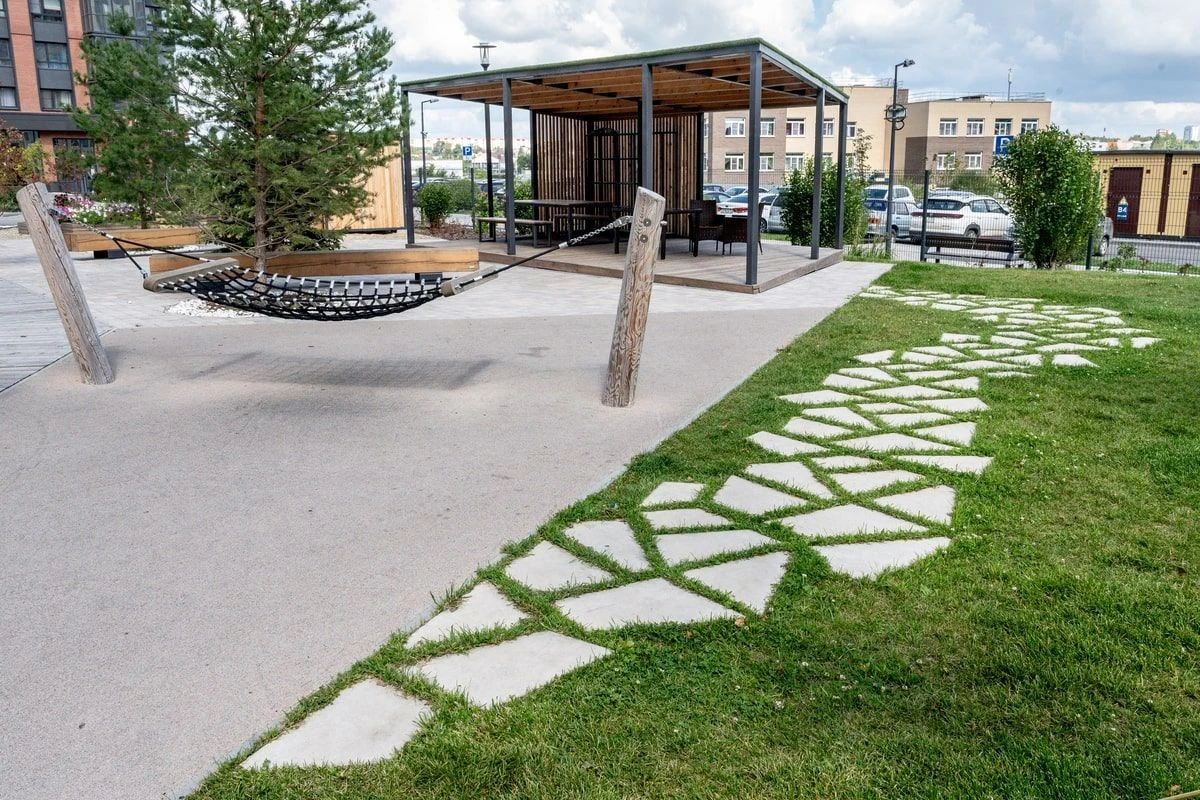 • Ландшафтный дизайн в Тюмени с плиткой Ригель, Трио, 300х900 мм