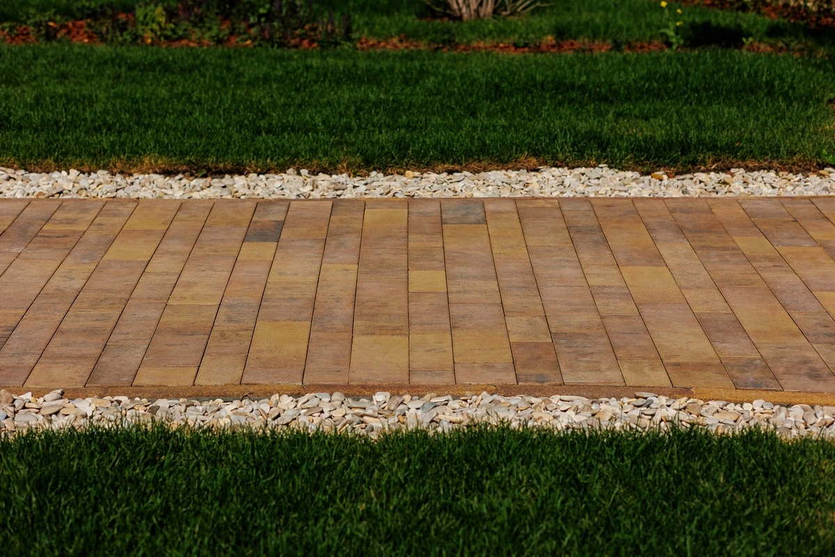 • Ландшафтный дизайн участка с укладкой плитки Старый город и Паркет 180х60 в Тюмени