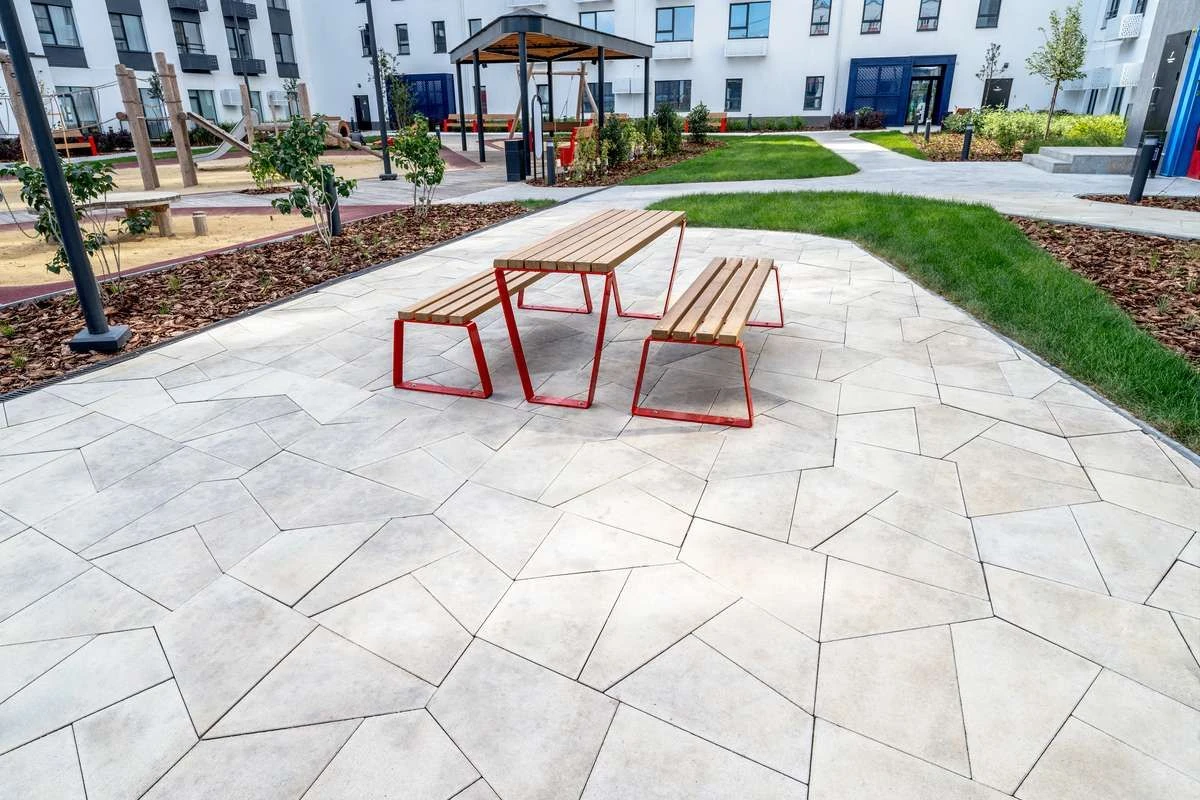 Пешеходные дорожки внутри ЖК «4 Ленина» вымощены тротуарной плиткой «Поревит». Для создателей жилого комплекса это возможность обеспечить жителям комфорт и привлекательную картинку на долгие годы.