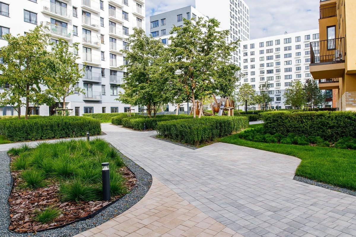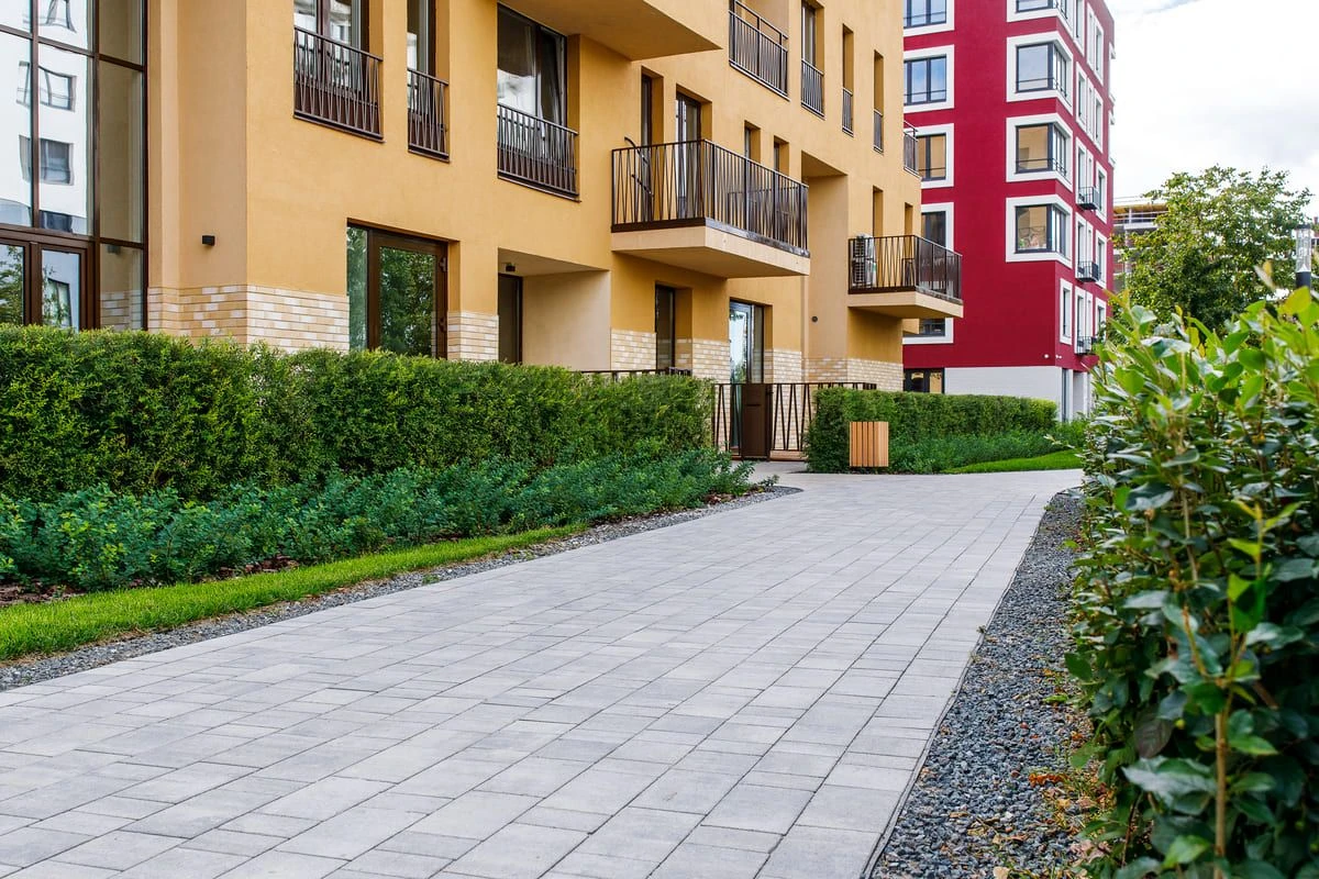 Благоустройство в Жилом комплексе "Европейский квартал" выполнено с помощью плитки: