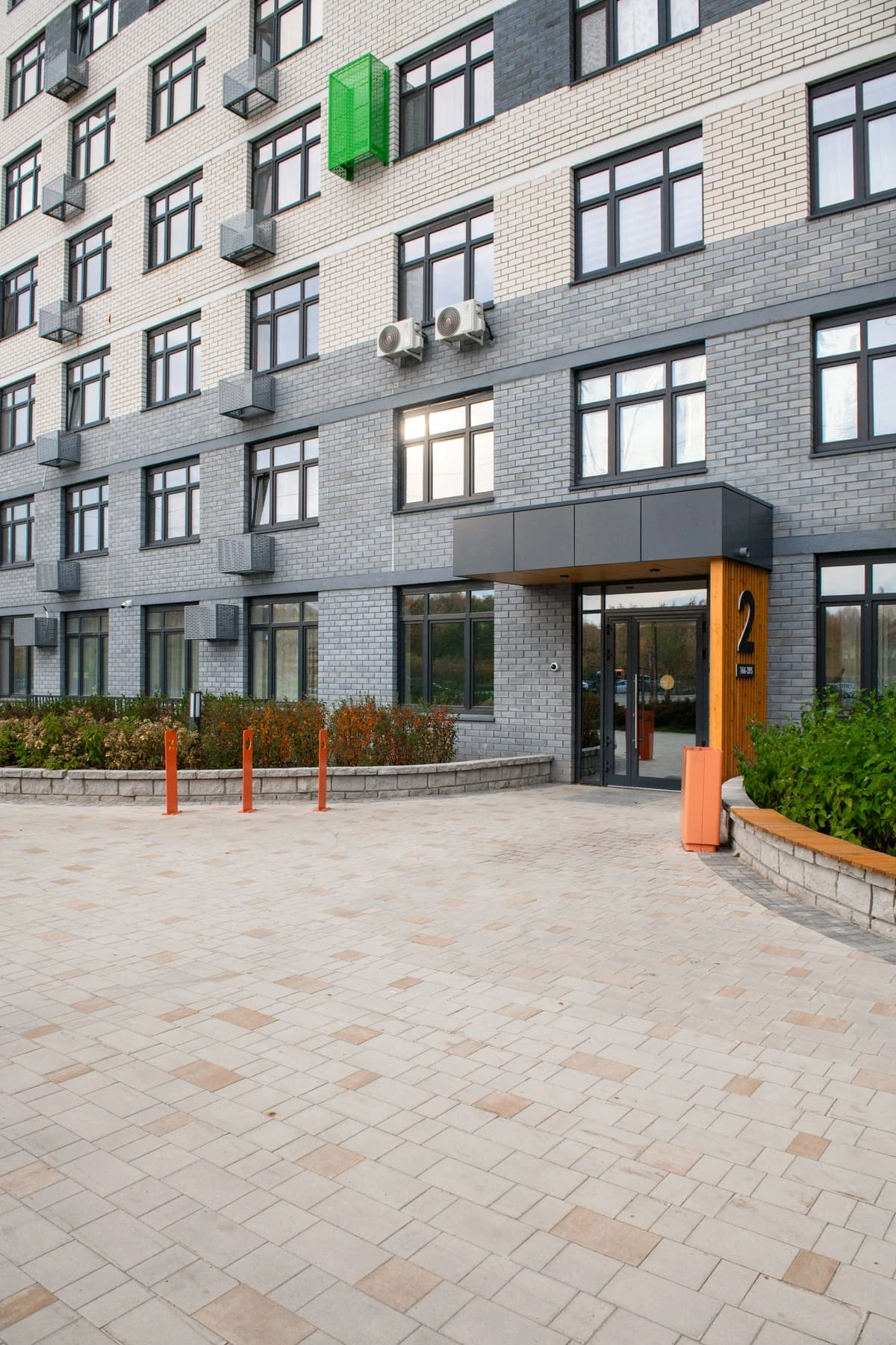 Проект выполнен в ЖК Колумб для внутренней и внешней отделки территории комплекса. Основный материал — тротуарная плитка «Старый город» в цветах Доломит и Степняк, которые визуально отделяют зоны друг от друга, а также служат контрастом от асфальтированной территории.