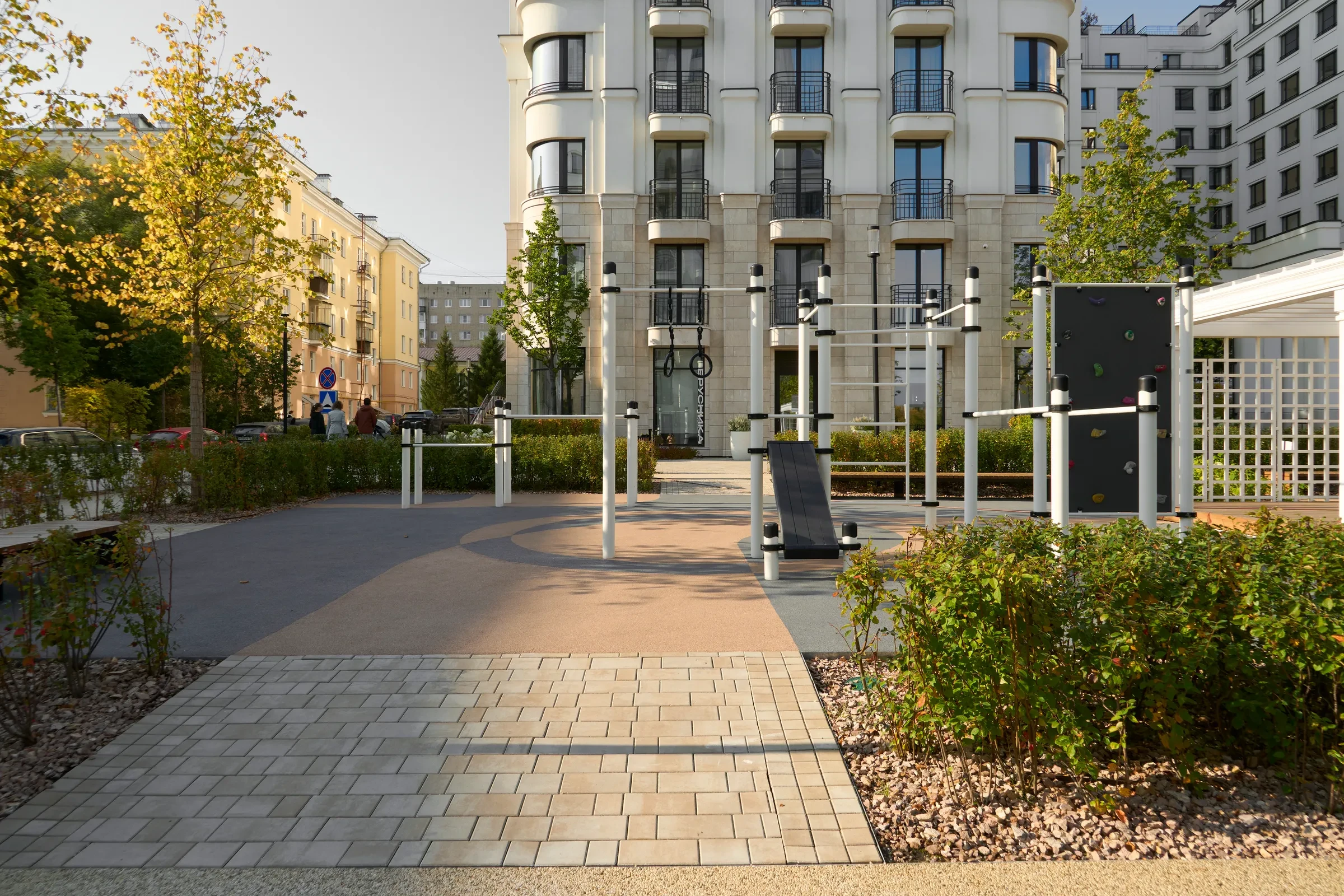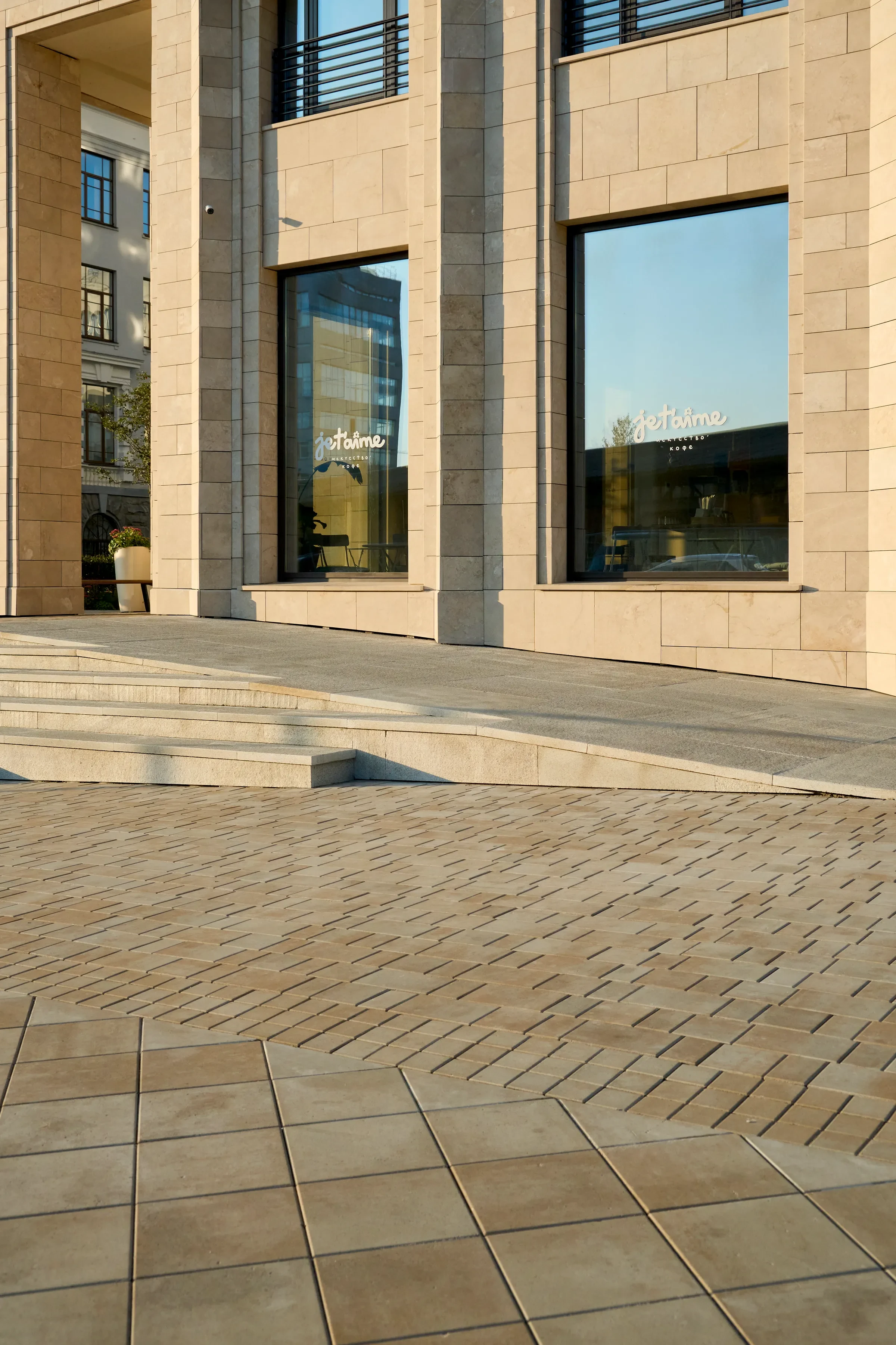 Для благоустройства территории жилого комплекса "На Некрасова" была выбрана плита формы Старый город, в цвете Степняк.