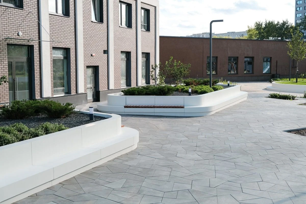 Для благоустройства территории внутри жилого комплекса использована тротуарная плита: